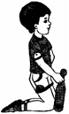 Стр. 37 2. И. п. - стойка ноги на ширине плеч, кегля в правой руке. Наклон вперед, поставить кеглю у левой ноги. Выпрямиться, руки на пояс. Наклон вперед, взять кеглю левой рукой, выпрямиться. То же выполнить к правой ноге (по 3 раза к каждой ноге). 3. И. п. - стойка на коленях, кегля в правой руке, левая на пояс (рис. 4). Поворот вправо (влево), взять кеглю (по 3 раза в каждую сторону).