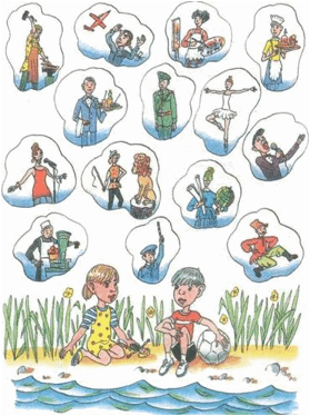Кем еще могут стать дети? Составь предложения по образцу: Коля хочет стать милиционером, а Оля - учительницей.