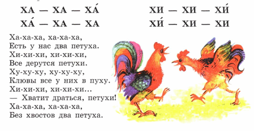 Стр. 22 Составить рассказ вам помогут рисунки. Послушайте рассказ Ответьте на вопросы. Перескажите его. КИТ-ГИГАНТ В океане живут громадные киты. Среди них есть голубые киты. Это огромные животные. Китенок голубого кита больше двух слонов. Вот так китенок! А через полгода китенок становится вдвое больше. Вот какие гиганты живут в океане. О ком этот рассказ? Какие киты обитают в океанах? Что представляет собой детеныш голубого кита? Как растет китенок? Каких еще крупных животных морей и океанов вы знаете? ЗАКРЕПЛЯЕМ ПРОИЗНОШЕНИЕ ТВЕРДОГО ЗВУКА [X] И МЯГКОГО ЗВУКА [X']Произнесите несколько раз слоги со звуком [х]. ХА — ХО — ХУ — ХЫ — ХЭ ХУ — ХА — ХЫ — ХЭ — ХО АХ — ОХ — УХ — ЫХ — ЭХ УХ — ОХ — АХ — ЭХ — ЫХ Произнесите столько раз слог -ха, сколько услышите хлопков. Произнесите столько раз слог -ох, сколько палочек на столе, и столько слог -ах, сколько фишек. Произнесите ряд слогов за взрослым, соблюдая ударение. Ха-ха-ха, ха-ха-ха, На обед у нас уха. Хи-хи-хи, хи-хи-хи, Дай попробовать ухи. Выучите стишки. Взрослый начинает, а дети доскажут. Сравните по звуковому составу два слога: -ха-, -хи-.